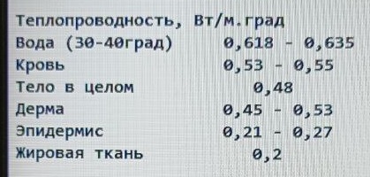 Поэтому сразу приходит мысль, что наружную (внешнюю) поверхность эпидермиса в пару нагреть невозможно из-за того, что эпидермис (поверхностный роговой слой) мокрый (распаренный) и теплопроводный (из-за воды). Все тепло уходит вовнутрь в дерму в потоки крови. То есть, чтобы нагреть рецептор боли в дерме до Т39 (условно), надо нагреть поверхность эпидермиса до Т42 в пару или до Т47 в сухом воздухе.