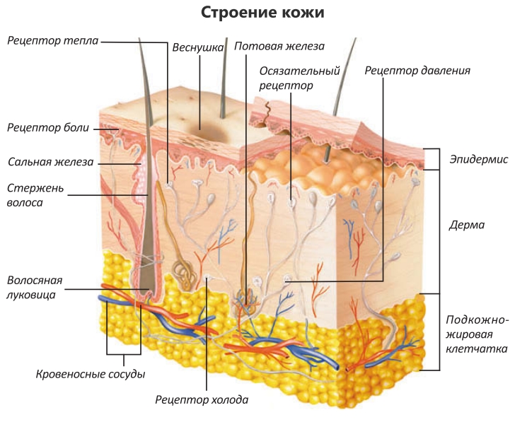 *Так или иначе, врачи на картинках располагают болевые рецепторы "выше" тепловых и холодовых.