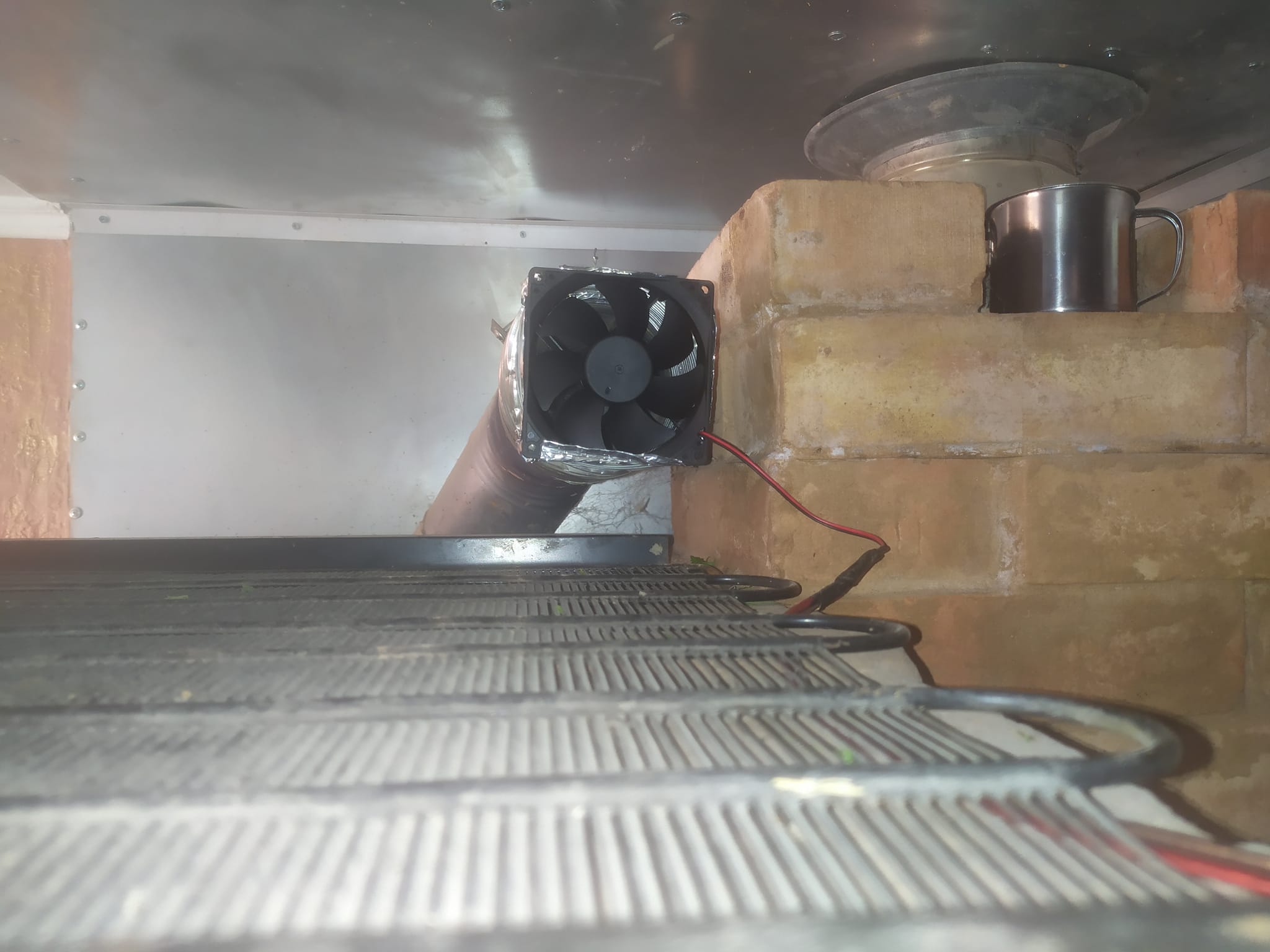 Присобачил вентиллятор от компа для наддува сверху вниз.