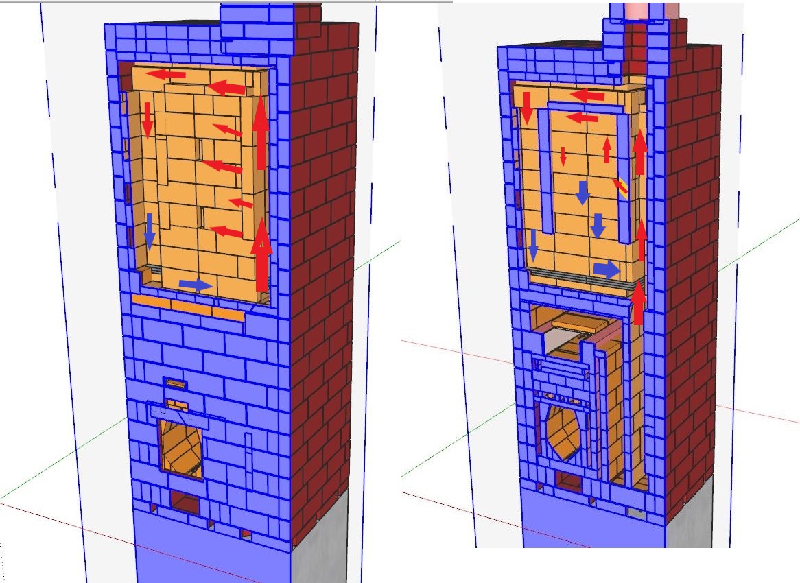Верхний конвективный ярус расположен углом - слева и справа от дымохода (см.разрезы)