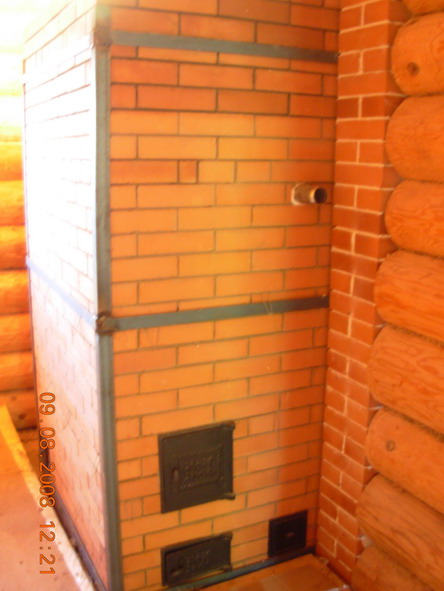 Если горячий воздух от кассеты выходит вверх через щель и дует жаром на оцилиндрованные брёвна, то их цвет может измениться, и при сильной топке они могут даже слегка побуреть…