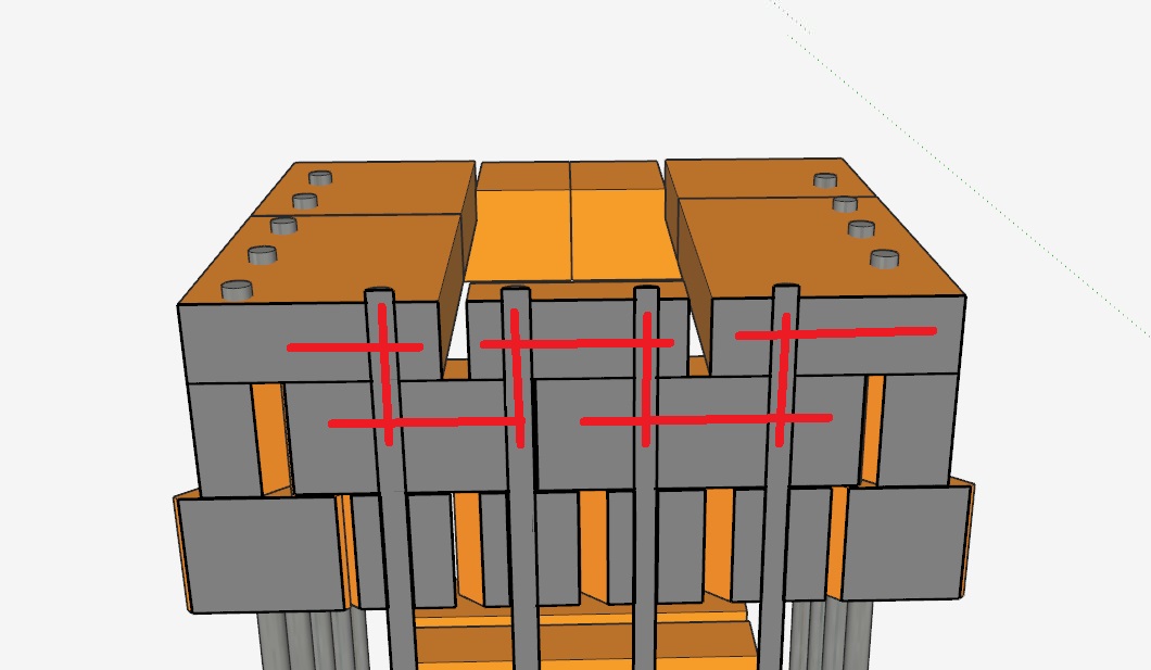 Попарно (местами по три) замыкается через ряд... Самый верхний ряд замыкает по всему контуру... Механической прочности более чем достаточно... Главное чтобы стержни не потекли... Но шамот так не греется... Даже с учетом натопа... |