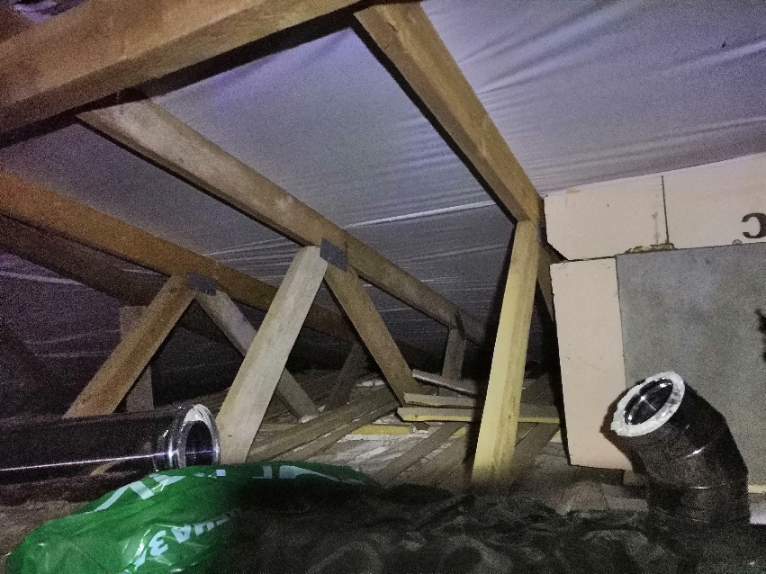 Поэтому решил вывести ее подальше от стены, чтобы только дымоход вывести за "треугольник" ветрового подпора