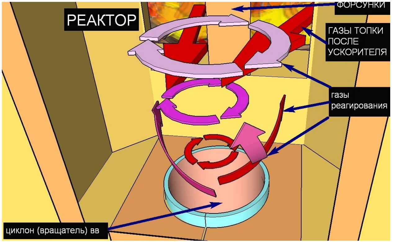 Хочу обратить внимания на важнейший аспект: и Топка, и Реактор как таковые не имеют традиционных оборотов (стенок), а выступают как пустотелые теплоизолированные объемы, что позволяет утверждать - СВОБОДНОЕ ДВИЖЕНИЕ ГАЗОВ возможно и осуществимо на практике, в чем легко убедиться всем желающим.