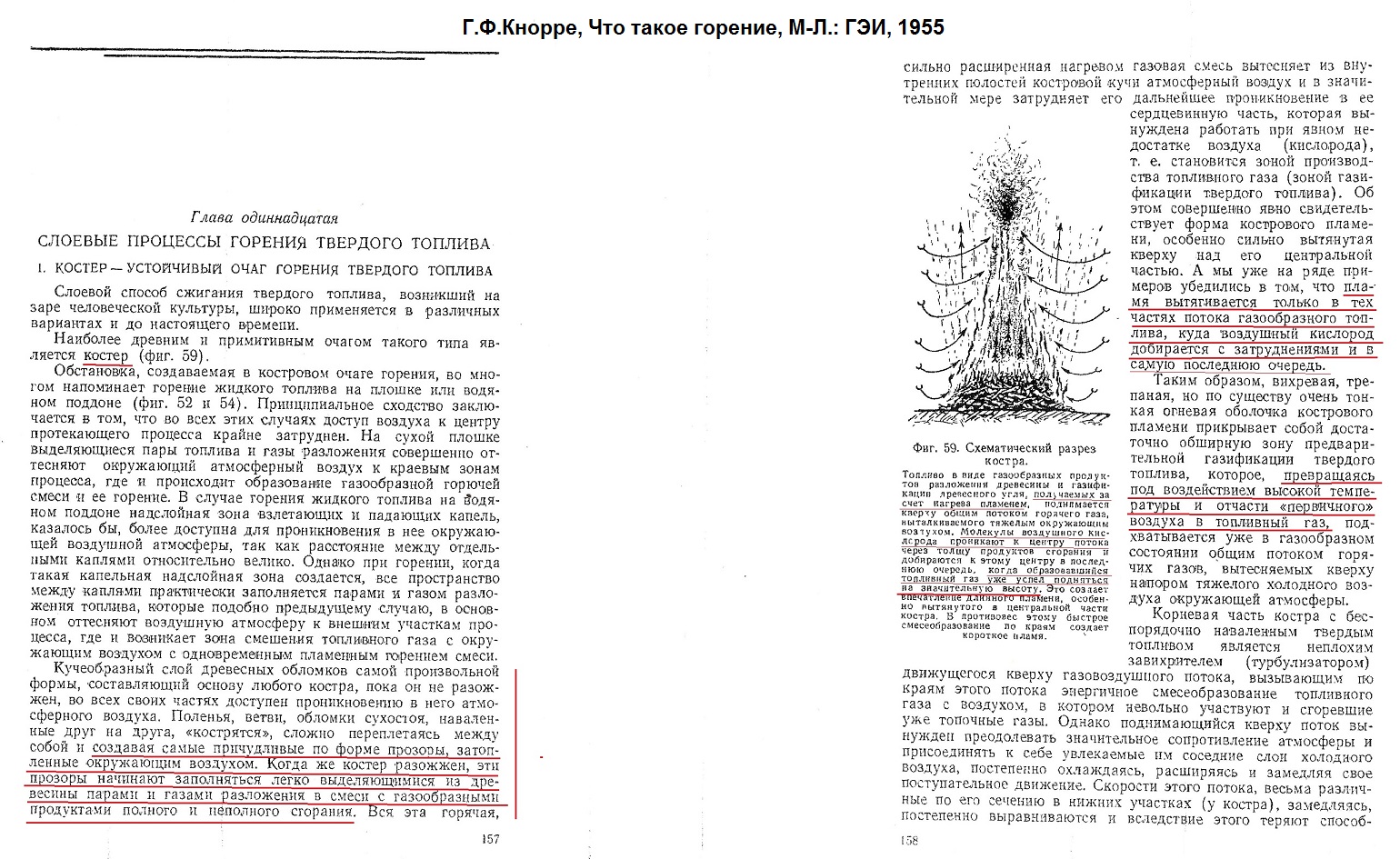 И Кнорре и Вы пишите что "внутренности костра превращаются в газогенератор, поставляющий горючие газы в пламя над дровами."
