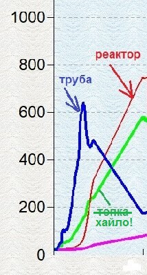 Т.о. если на трубе за 600С, а в Топке и Реакторе соответственно 150С и 50С на момент (В), с очевидностью следует: