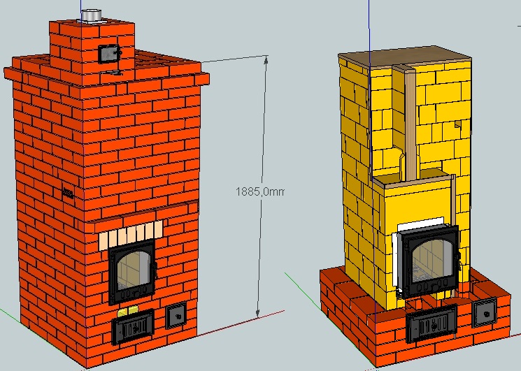 В инете были взяты два проекта от одного автора,из них сделал наброски своей будущей печки.За ошибки,а они гарантированно есть,сильно только не ругайте... Саму кладку буду перерисовывать,как со SketchUp до конца разберусь.