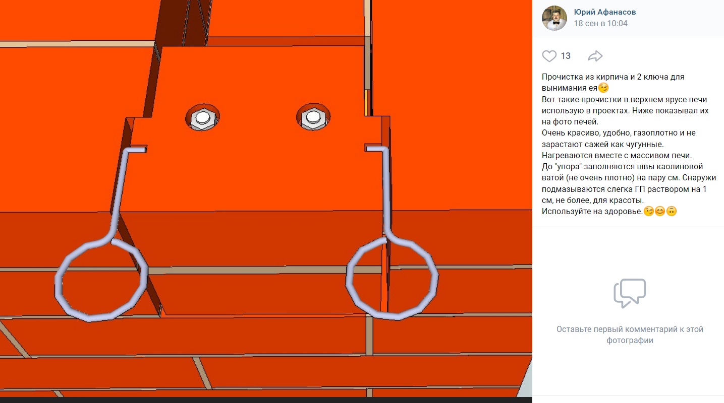 В месте выхода газов в каналы у оригинала должны быть отражатели из нержавейки.В моих набросках они заменены полосками шамотного кирпича,подвешенными на нихромовой проволоке.