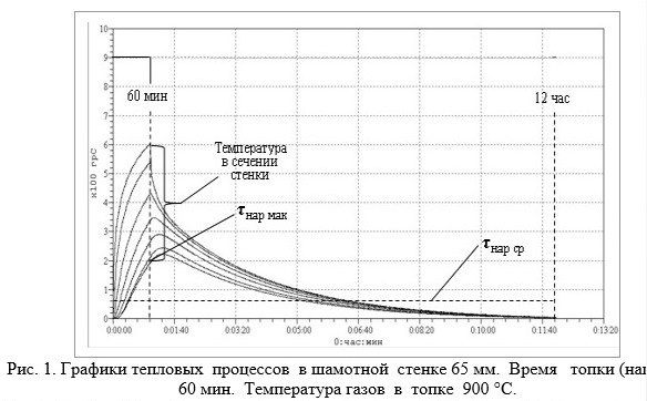 Все и просто и как всегда сложно. Смотря с какой стороны рассматривать. Исследование тепловых процессов в кирпичной стенке весьма сложный процесс. Я знаю всего два способа это сделать. Первый способ - это графический метод. При всей кажущейся простоте он не позволяет провести это исследование до конца. У меня при всех многочисленных попытках так и не удалось полностью это проделать. Второй- чисто математический. Составляется ряд дифференциальных уравнений и с помощью вычислительной техники они решаются. У меня не было и нет таких способностей и возможностей это проделать. И еще не факт, что точность математического подхода обеспечивает нужную точность результата. Там принимается ряд допущений, упрощающих расчет. Поэтому был разработан новый метод исследования тепловых процессов с помощью конденсаторной модели. Суть заключается в том, что тепловые процессы в сечении кирпичной стенки заменяются эквивалентными электрическими процессами в цепочке конденсаторов и резисторов. А на эту цепочку воздействует напряжение эквивалентное величине температуры в топке. Для этого сечение стенки разделяется на несколько слоев и каждый слой, имеющий свою конкретную суммарную теплоемкость, заменяется конденсатором с эквивалентной емкостью. А между слоями (конденсаторами) устанавливаются резисторы, эквивалентные теплопроводности выбранных слоев. Напряжения, возникающие на конденсаторах, при подключении напряжения (эквивалента) температуры подаются через многоканальный регистратор на ПК. И на ПК в масштабе времени рисуется вся картина электрических процессов в конденсаторной модели, как эквиваленте тепловых процессов в стенке печи. Для ускорения электрических процессов в модели, элементы модели, конденсаторы и резисторы выбраны так, что постоянная времени электрической модели выбирается меньше, чем постоянная времени самой стенки в 60 раз. Т.е. процессы в модели идут быстрее, чем реальные в 60 раз. Поэтому процесс нагрева стенки печи (примерно час) на модели это 1 минута. А теплоотдача стенки в течении времени 12 час или 24 час занимает на модели 12 и 24 мин. Это очень удобно. На такой конденсаторной модели были исследованы различные кирпичные стенки, и из разных материалов (шамот, красный) и различной толщины (кирпич, пол кирпича, четверть кирпича) и многослойные при различном сочетании кирпичей. Точный ли этот метод? Я считаю достаточно точный. Он подтверждается различными ранее снятыми графиками. И к тому же он очень наглядный. На этой модели и были исследованы варианты печей типа "термос". И было понятно, что предложенный подход по создания таких легких перегретых печей правильный. Вопрос стоял только в уточнении параметров и расположения слоев теплоизоляции. И это вопрос был решен созданием и уточнением опытных образцов.