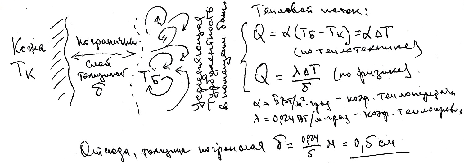 | Тепло-паро-изолирующую "рубашку" около кожи человека будем рассматривать как плоский переходный погранслой условно неподвижного воздуха толщиной "дельта"... |