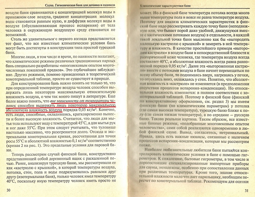 Юрий Михайлович мне нравятся ваши научные изыскания . Но ещё как только началась эта тема -я спрашивал про рассмотрение лёгкого пар вместе с помещением. Вот скажите пожалуйста в одних парилках заходишь в парилку и сразу покрываешься конденсатом из тяжелого пара. А в другой парилке заходишь и медленно начинаешь потеть. И в это время никто не поддает на камни.Ведь в парилке не только пар. Но и стены,потолок пол, печь излучают тепло и излучают его по разному в разных парилках. Это зависит от материала отделки парилки. От теплогенератора. Например некоторые мои заказчики ходят в баню где я построил им печь без веников. Они просто сидят и наслаждаются ИК излучением от стен , от печи. Обычно такой " кайф" на второй день после протопки теплоёмкой печи. Пар там никто не генерирует. Вот в прошлом году был интересный заказчик -он попросил ему поставить рядом с кирпичной печью металлическую печь. Когда я запускал в работу обе печи по очереди. Очень значительный контраст микроклимата с железной печью и кирпичной. Когда была протоплена металлическая печь -очень жёсткое тепловое излучение. Пар очень тяжёлый( мокрый) -тяжело дышать в парилке. Тело сразу покрывается конденсатом. Печь эта кстати защищена от излкчения металла -обложена камнями. На следующий день протопил кирпичную печь. Приятно сидеть в парилке, легко дышится, пар лёгкий. Тело потеет -а не покрывается конденсатом. Просто рассмотрение одного лёгкого или тяжёлого пара считаю не корректным. Вон Евгений Исупов исследует и пар и парилку совместно. Вот по его графикам и надо делать заключение.