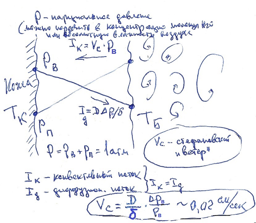 Дело в том, что в погранслое имеется перепад не только концентраций пара, но и концентраций воздуха.