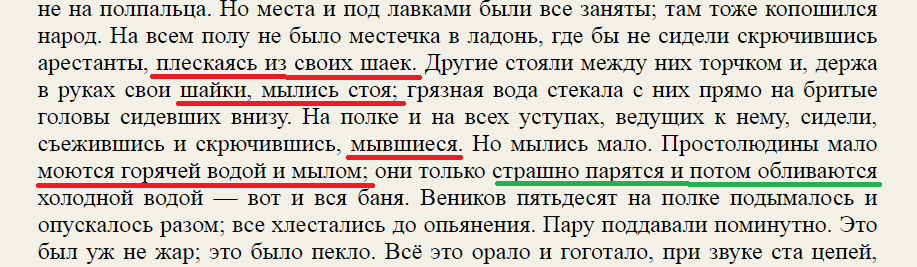 Еще Федор Михайлович отметил, что русский мужик мало моется, он только страшно париться и обливается холодной водой. Вот и все мытье.