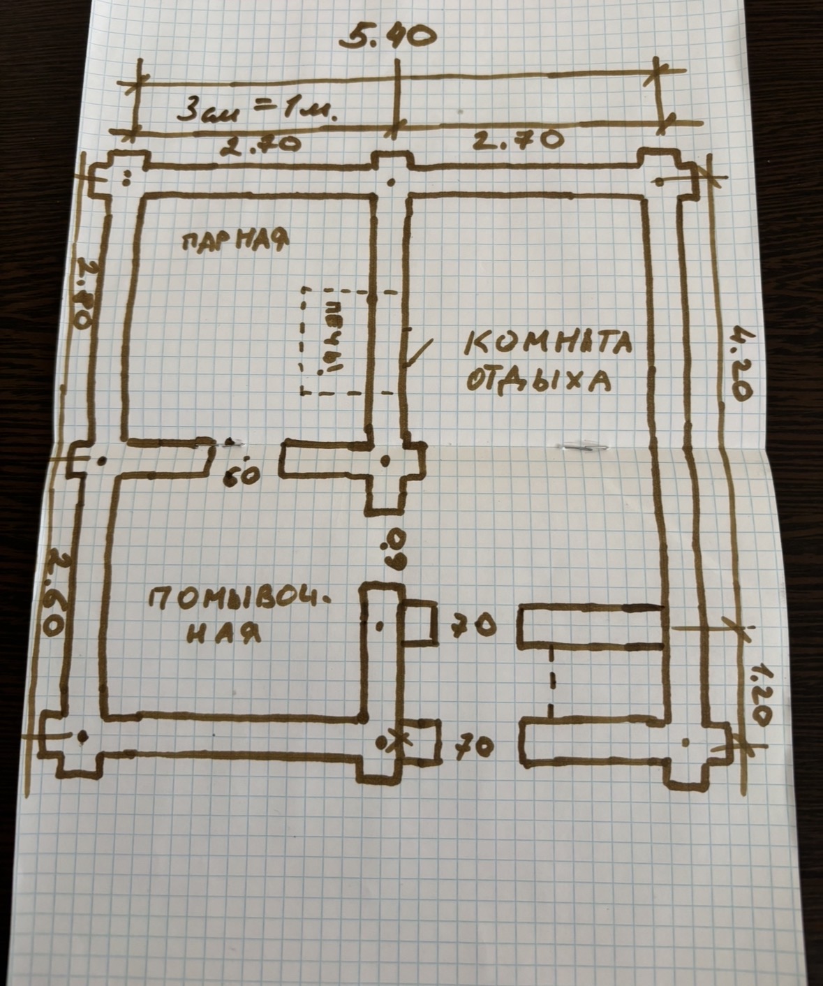 Бревно 25см. Чем дальше, тем больше вопросов. Как правильно с позиционировать печь( планирую строить мотивированную печь Васильева) относительно полоков, двери, стен и т.д? Прилагаю набросок будущей бани. Может куда-то что то передвинуть или ещё чего нибудь.