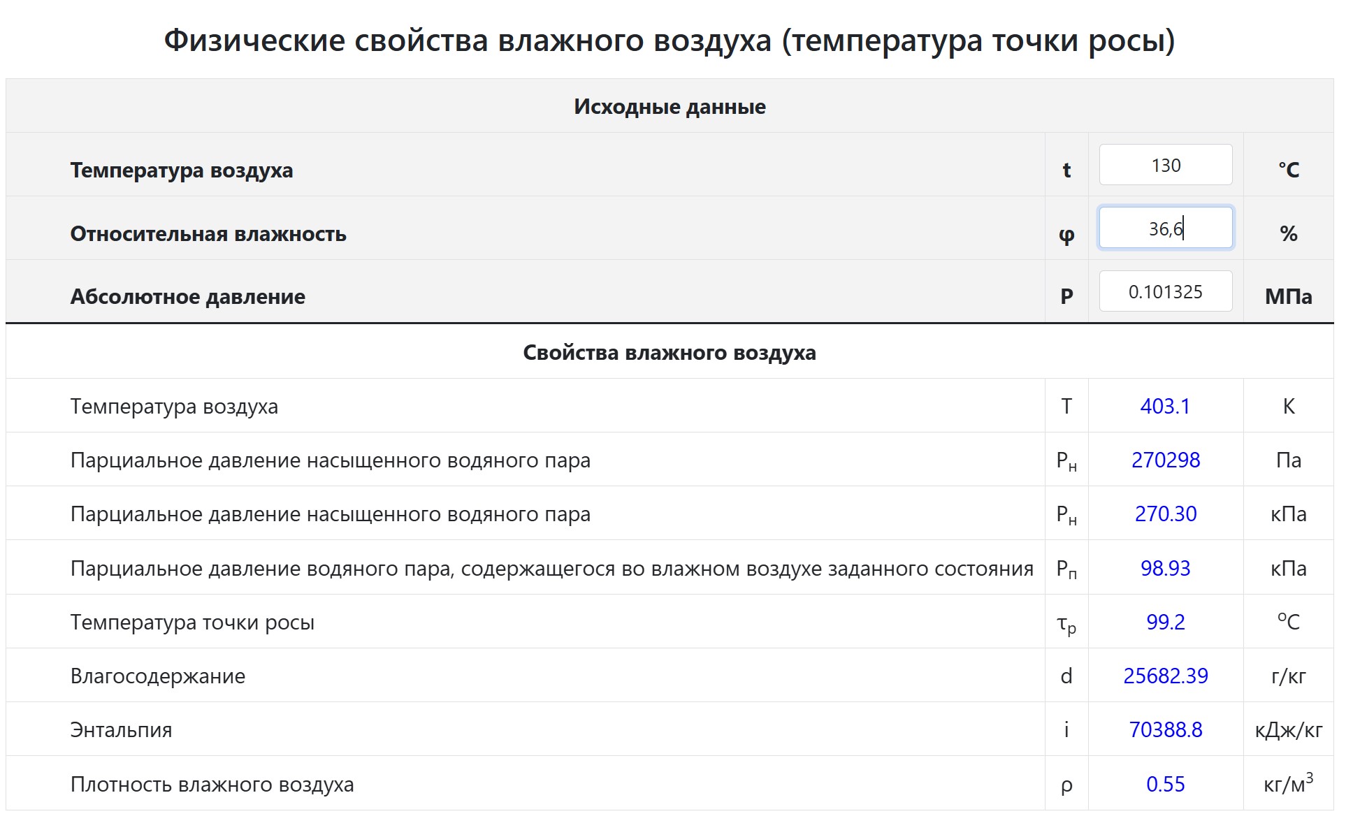 Берем инженерный калькулятор Влажного Воздуха