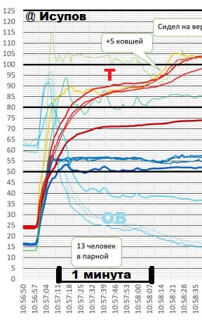 Не помешает и Н1. На графиках видно, что Н1 всегда взлетает вверх при входе в баню из-за конденсации паров на сенсор. А потом в легком пару сенсор высыхает (Н1 падает с охлаждением причем), а тяжелом пару не высыхает. Исуповым это изучено.