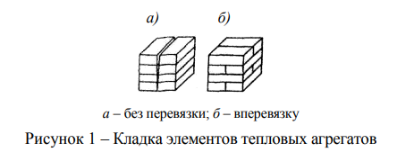 «6.1.6 Кладка из материалов одного типа ведется вперевязку, за исключением сводов при выполнении их кольцами, в соответствии с рисунком 1. Слои кладки из различных материалов не перевязываются, за исключением мест, специально указанных в проекте».