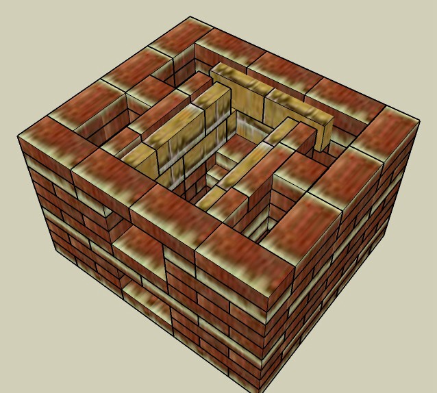 Уважаемые печники, на сайте стовве.ру в разделе Каталоги БИК П2 нарисована с каменкой со стороны противоположной топке, а в схемах порядовок топка находится сбоку. Я тут переделал. Мне надо чтобы каменка была с противоположной стороны от топки. Посмотрите, пожалуйста, какие у меня тут ошибки. Рисовал все в СкетчАпе.