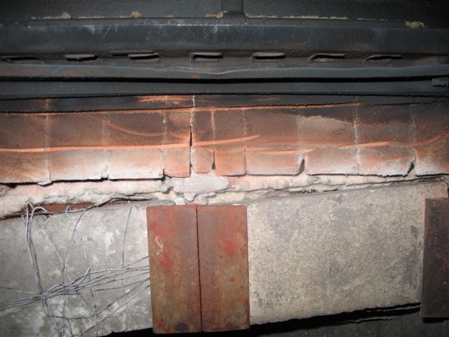 Выше по теме обсуждалась защита металлической перемычки топки с помощью лещадок, подвешенных на маленьких стальных уголках.