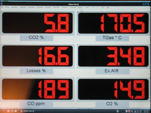 Поднятие СО в конце топки находиться в норме стандартов, даже гораздо ниже. Подбрасыванием дополнительных каких то дров не занимался. Задача испытаний - пользовательский режим (на испытаниях в основном топила моя мама, я только снимал показания).
