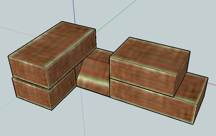 Уже что-то можно править. С помощью Линии или Прямоугольника можно построить на кирпиче линии по которым его будем обрезать и потом ластиком убираем лишнее. Строим недостающие плоскости, красим их.