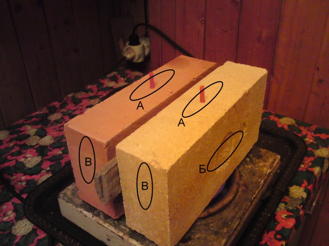 Было предложено определить быстроту нагрева кирпича по расплаву стеариновой свечи на различных марках кирпича. Для опыта взял чаще применяемый витебский 1 цех и ША8.