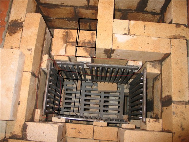 Поэтому: шамотная решетка ставиться свободно, а через проставку опора для каменной закладки. Так же как и печь с баком для камней, см. ряд 13 порядовки http://stove.ru/foto/_130287505.jpg