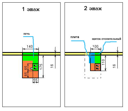 Ну вот опять уперся в проблему - выше было отмечено, что печь нужна размером не 4х4, а 4х5 кирпичей, что более вписывается и под стенку и под фундаменти под плиту на втором этаже.
