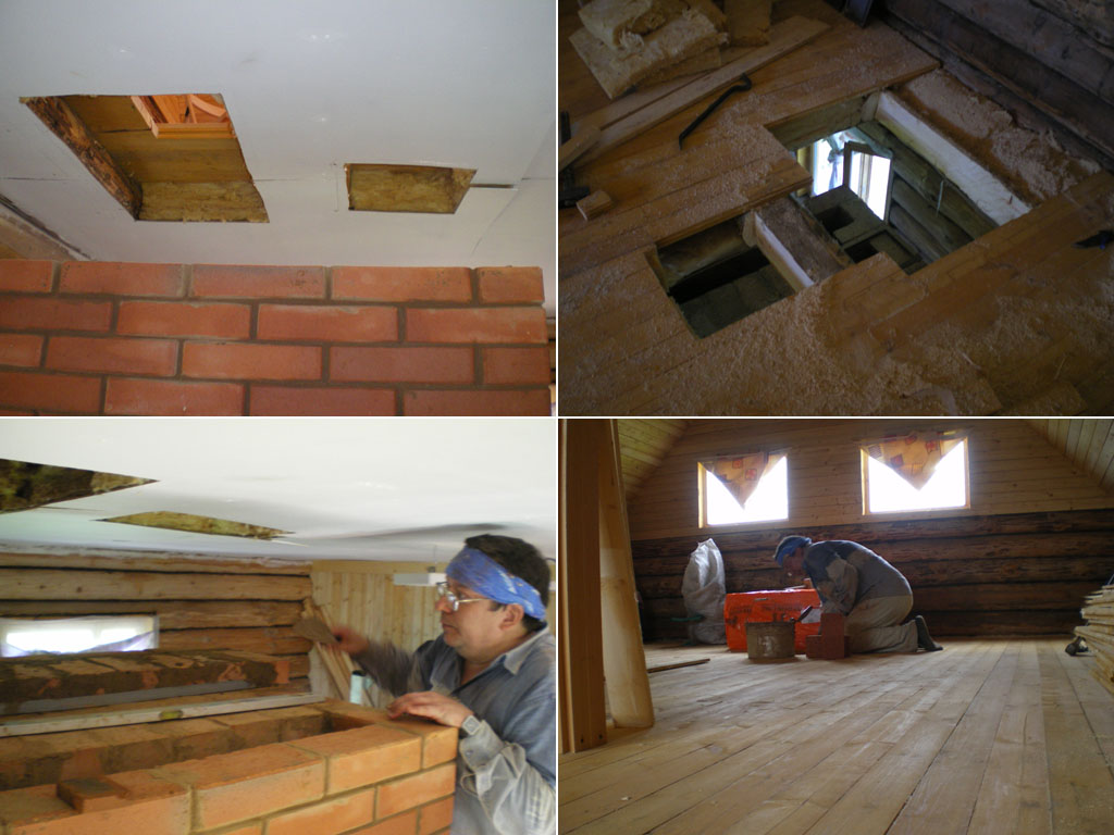 Ещё решение прохода через потолок мансарды и крышу ,по моему, не совсем хорошее.