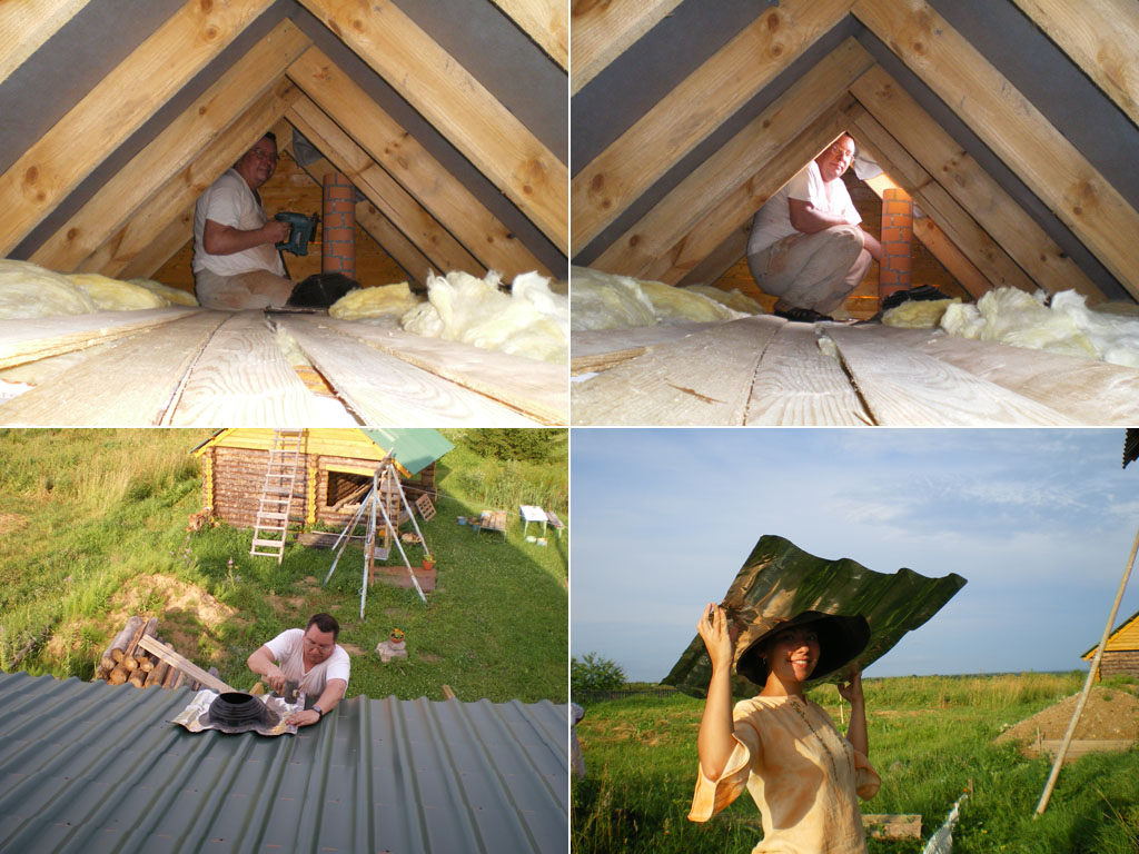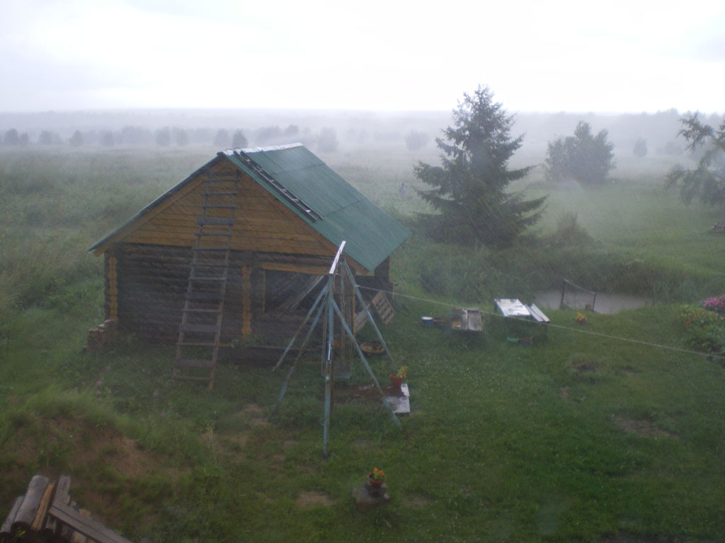 И погода позаботилась - полила огород, снизила температуру специально для работ под крышей и пробной растопки печки. )) Хотя было похоже на небольшой ураган. Но здорово!