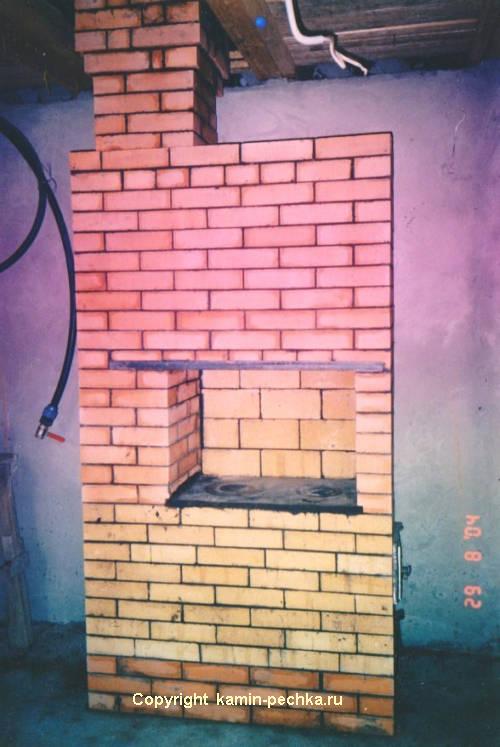 Недолго думая, я нашел "печника" по объявлению. Тот за 10 рублей сложил на цементном растворе (а я и не знал, что ложат на глине) подобную печь но уже в полкирпича: