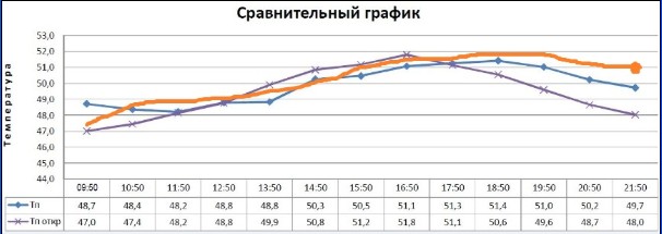 Я таки проверю на своей печи, но это будет субьективно, а вот вдруг всё-жеш на инструментальных испытаниях печи в Кузнецах, получится такой сравнительный график как на рис3? Где оранжевая кривая это режим когда при недогоревшей закладке(до какой степени?)закрыты дверки а задвижка таки открыта полностью.