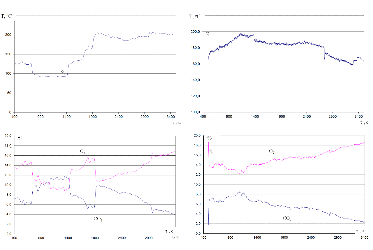 | Температура ДГ и содержание О2 и СО2 |