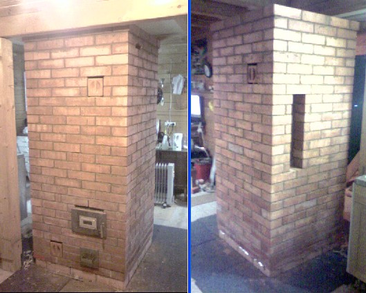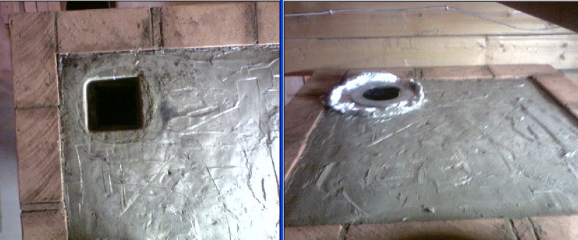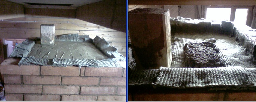 Уже сутки сушу небольшими протопками (5-6 осиновых не толстых полена), почти постоянно, с перерывами 1-2ч. Задвижка трубы открыта полностью и постоянно. Отверстие под регистор заложил кирпичём на ребро: внутри шамот снаружи красный. Прочистки тоже, только без глины т.е не герметичны.Пока ещё не высохло... До бетонной перекрыши не дотронуться, наверное от воды.