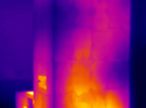 По всей видимости на снимках тепловизором стенка теплонакопительного щитка с пристроенной топкой или металлической печью. Возможно в помещение есть дополнительные источники тепла.