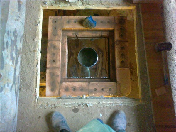 Отдельные элементы конструкции. Открытая дверка каменки и выход из каменки в колпак (сразу после выхода - ЗЛХ, её не видно):