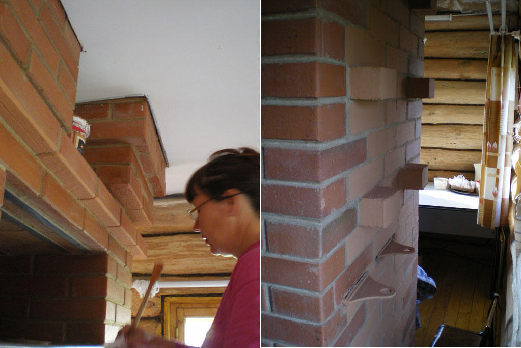 Хорошо, что оставил места для расширения уголков над плитой - подвыкрошился ГПС в уголках, но они двигаются, а кирпичи скользят по уголкам не нанося повреждений стенкам. Surprised