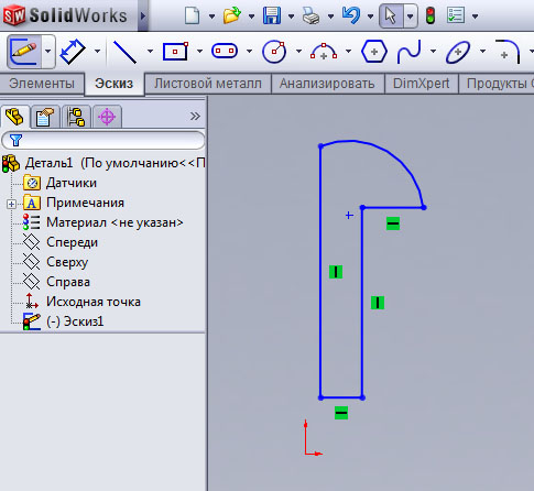 Нарисуем в плоскости Спереди эскиз рис.48.