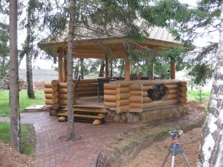 строили и беседку и фундамент одновременно...промерил ширину одной секции 250см ...возможно разделку и мойку надо переносить на вторую секцию...то что надо будет удалить бревна боковину это понятно...навес - спорно...саму варочную часть будем делать индивидуально