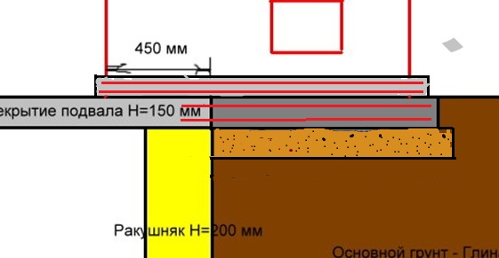 Проблема в том, что дом выстроен давно и неизвестно кем и как. В доме есть подвал с железобетонным перекрытием (при строительстве заливали бетон на опалубку и арматуру) и вот теперь часть печи (левая сторона) должна стать на это перекрытие. См.рисунок.