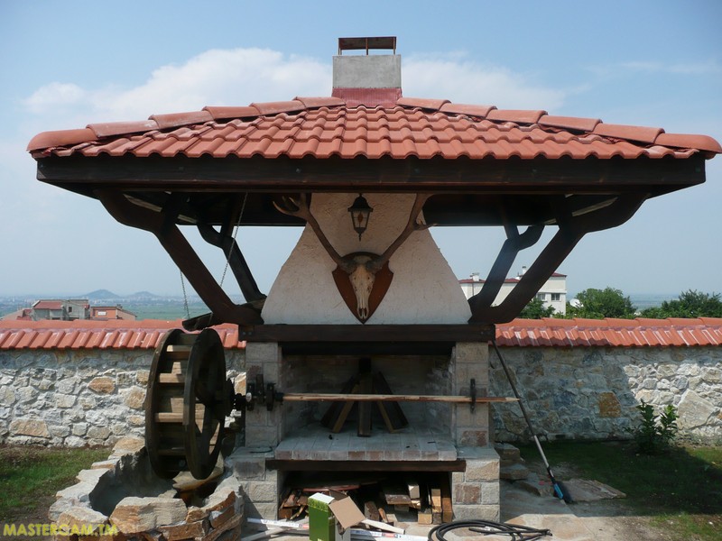 Хорошо когда беседка для барбекю имет средства защиты от непогоды. рольставни или прочее