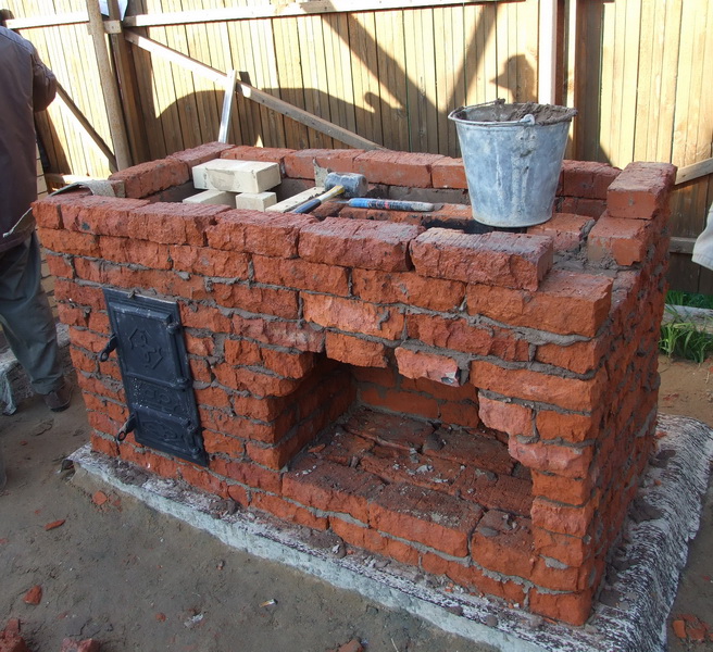 | Поднимаем кладку и закладываем площадку под мангал |