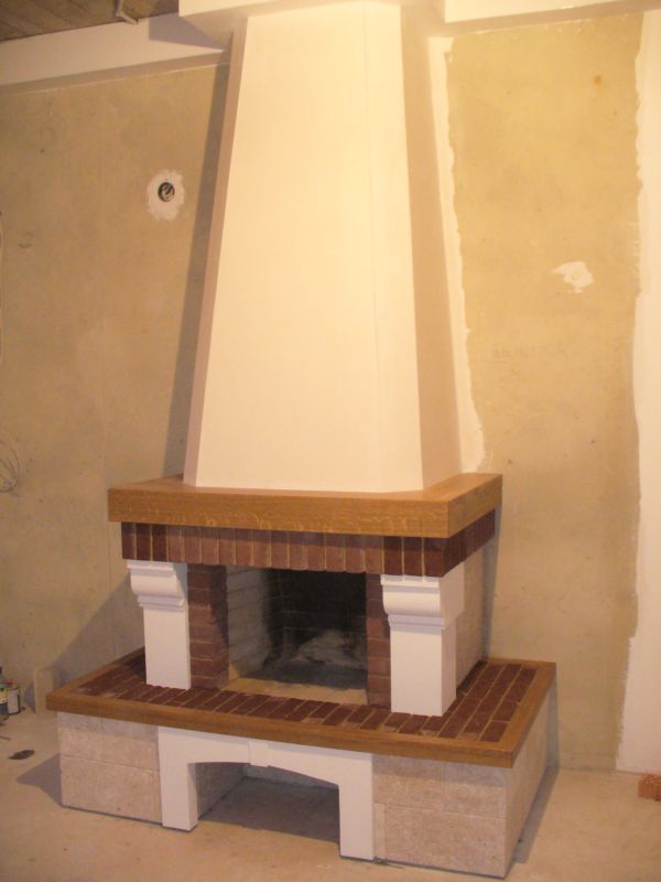 Сам дымоход Шидель с трубой диаметром 200 мм вмонтирован в кладку стены и находится за будущей топкой камина?