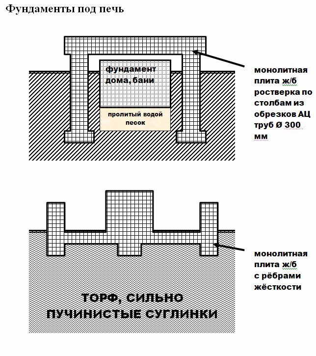 4. "выдерживает" это не показатель! Главное - тн/см2 Фундаменты не перевязывают п.ч. это значение разное для дома и для печи! И "гуляют" они по разному...