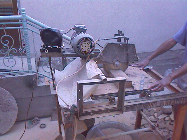 Резка кирпичей на станке.