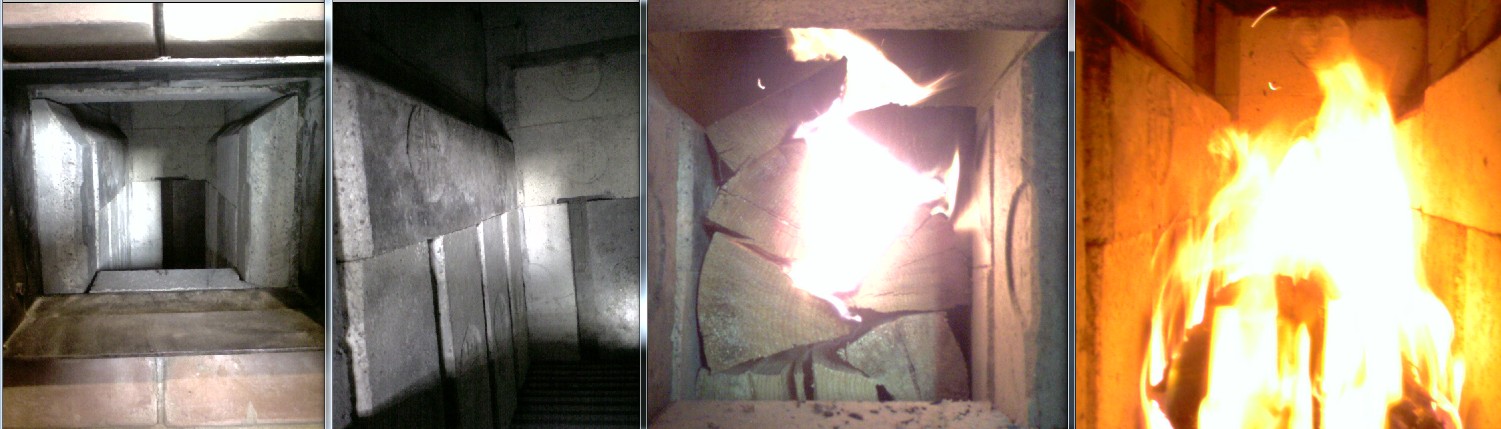 Во время топки (осиной) видно что, пламя опускается и заворачивается через подвёртку вверх, в подъёмный канал, ламинарным потоком, красного цвета. Иногда светящийся поток достаёт до "дна" подвёрточного канала. Из СШ, появляется короткое, оранжево-голубое пламя. ДГ практически прозрачные, стекло остаётся чистым до конца топки.