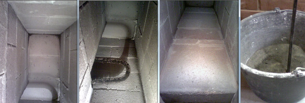 Жалею что не сделал топливник с подачей ВВ между футеровкой и наружным контуром. Чтобы продлить срок службы ядра и чтобы попытаться организовать подачу ВВ, была сделана дополнительная футеровка лещадкой, с вертикальными фасками, которые образуют каналы по которым может пдниматься дополнительный воздух от колосника. Ширина топливника получиласт - 175мм, длинна - 460мм, при это горение улучшилось, но т.к. за один раз помещается меньше дров, то приходится делать 1,5-2 заклодки, а в сильные морозы 2,5-3.
