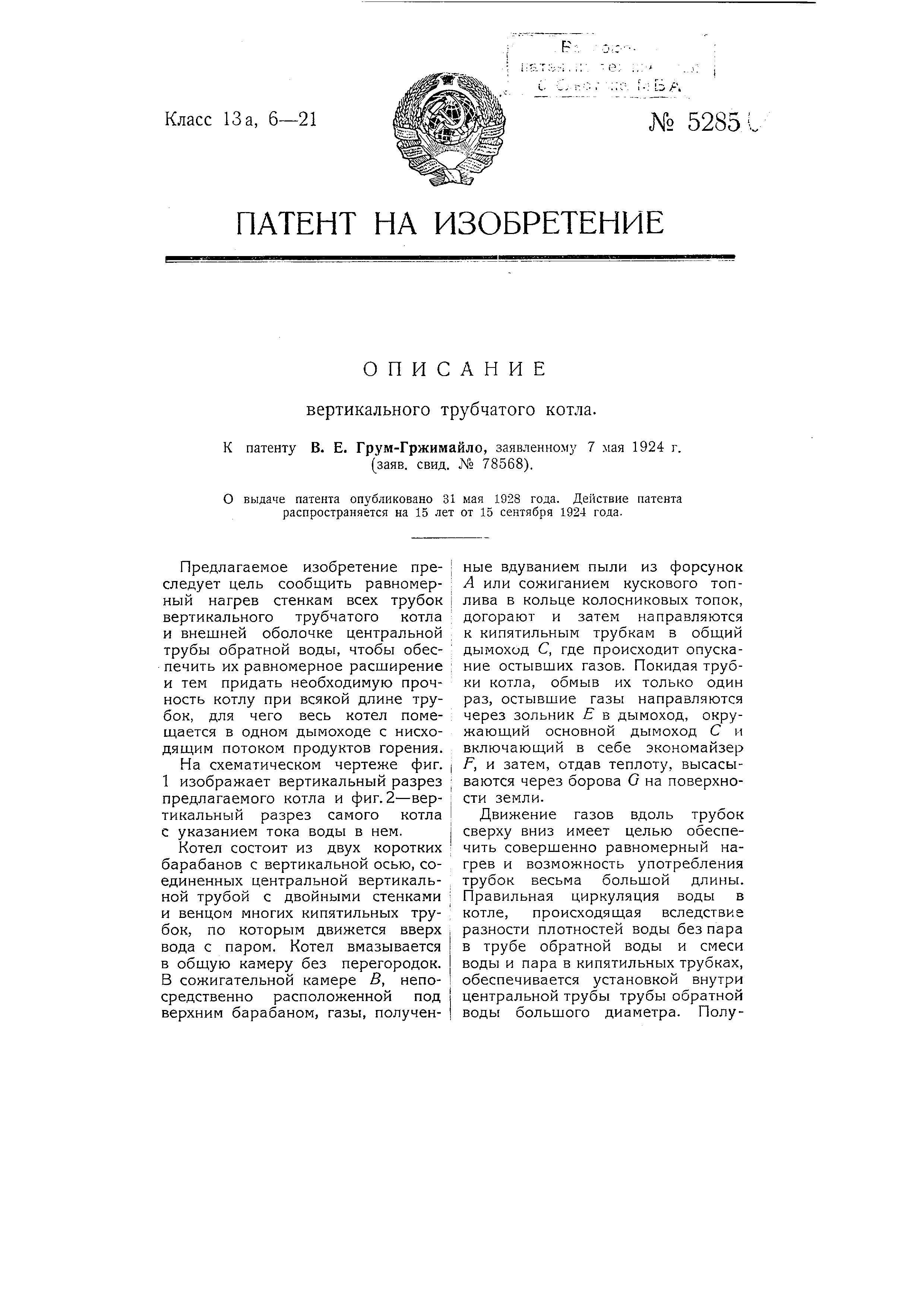 "Движение газов вдоль трубок сверху вниз имеет целью обеспечить совершенно равномерный прогрев и возможность употребления трубок весьма большой длины."