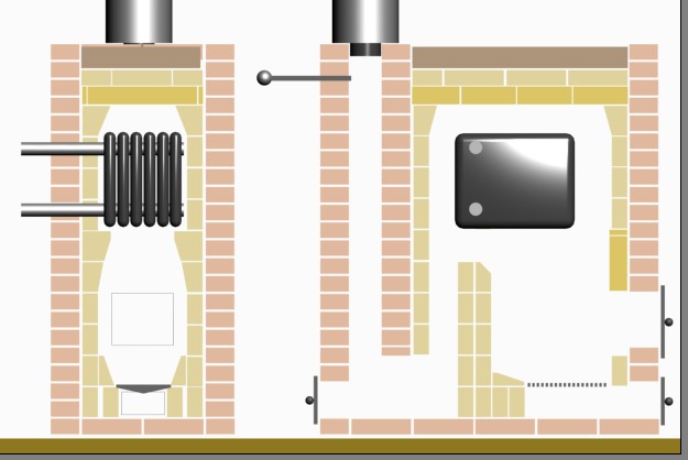 Спасибо ) Нарисовано красиво и верю что грамотно... Но меня интересуют следующие моменты: как в такой конструкции будет обстоять дело с засаживанием теплообменника, способ его чистки в случае надобности (наверное только через топочную дверцу), еще несколько смущает глубина всей конструкции, то есть фронтально дверцы смотрят на нас, то глубина согласно вашему рисунку равна 5, 5 кирпича, а это примерно 1.4м. Что если выполнить колпак и подъемный канал в одной плоскости, с целью уменьшения габаритов? Например, взять ширину котла равную 4 кирпича, длину или глубину в нашем случае, тоже не более 4 кирпича, футеровка на ребро, да еще и половинным огнеупорчиком, видело такой у нас в продаже-сантиметра 4 толщиной. ? Я сам не печник, просто хочется научиться )) Если что говорю не так - опровергайте, я не гордый, и опытных людей всегда слушаю с большим вниманием и пониманием )))