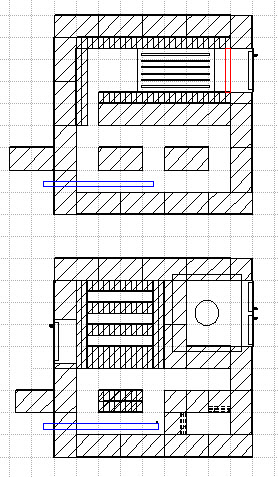 С чертежа надеюсь все понятно. Каменная засыпка распределена на две части печи с центральной стенкой перевалом (можно и на одну сторону, только над топкой).